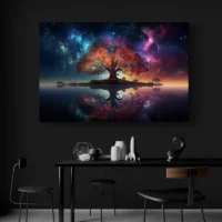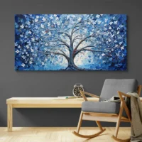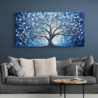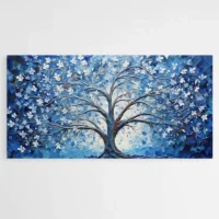 On ressent tout de suite une ambiance calme, presque méditative. Le contraste entre le noir du tronc et les touches lumineuses attire le regard. Ce tableau plaira à qui aime une déco sobre mais riche en détails, aux amateurs d'images naturelles stylisées et à ceux qui cherchent un point focal discret mais présent.