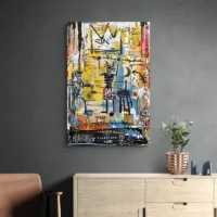 Le rendu évoque l'art urbain et la peinture crue. On ressent de la force, un peu d'urgence, et une chaleur due aux tons jaunes et rouges. Il plaira aux amateurs d'images expressives, à ceux qui cherchent une toile qui impose sa présence sans se fondre. On sent le geste, les lignes rapides, le caractère franc.