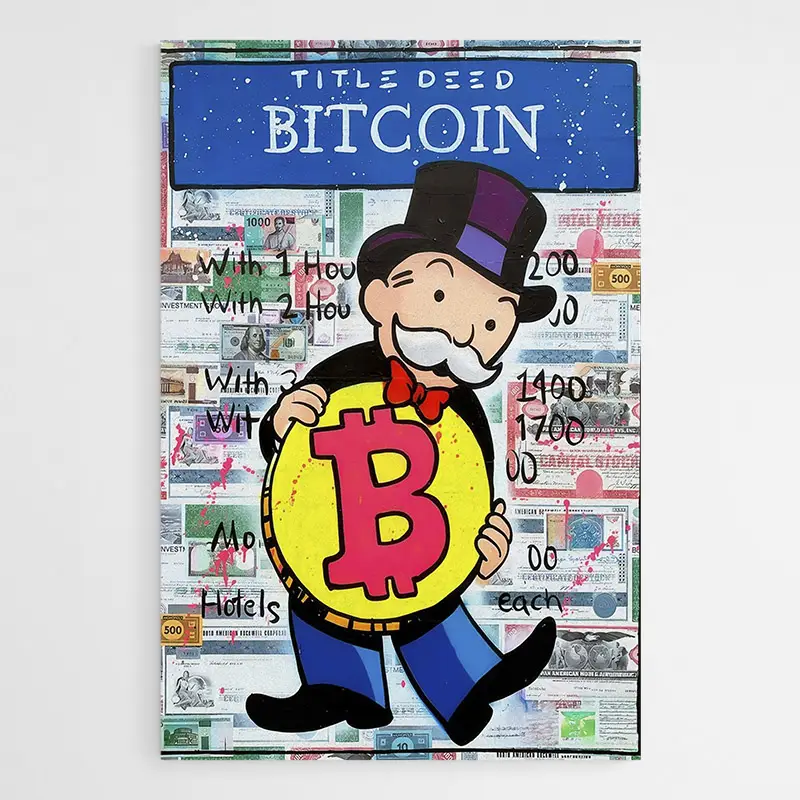 Tableau Bitcoin Monopoly, un clin d'œil audacieux