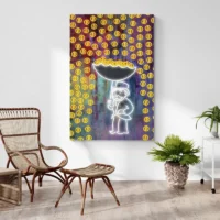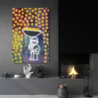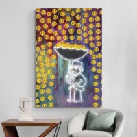 Ce visuel plaira aux passionnés de cryptomonnaie et à ceux qui cherchent une toile au ton affirmé. L’image combine modernité, contraste et un petit côté ludique, on sourit un peu, on reste intrigué. L’effet recherché vise la présence sur le mur, la pièce attire l’œil, elle pose un ton.