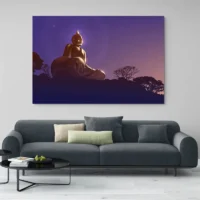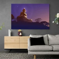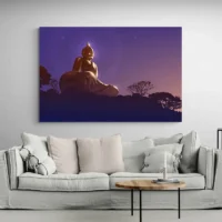 Posez la toile au-dessus d’un meuble clair pour faire ressortir l’or, ou sur un mur texturé pour renforcer l’ambiance. Ajoutez une plante verte et des éléments en bois clair pour compléter la scène. Pour prolonger cet univers, découvrez nos tableaux Bouddha et nos tableaux oriental.