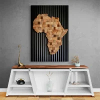 On ressent l’Afrique comme une invitation à explorer. Les formes restent lisibles, les lignes restent propres, et les couleurs restent discrètes, ce qui donne une impression de stabilité. Cette pièce parle au cœur des amoureux d’itinéraires, de cartes anciennes et de découvertes culturelles. Elle installe une atmosphère ouverte, calme et chaleureuse, idéale pour une entrée ou un coin lecture.