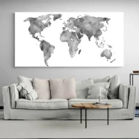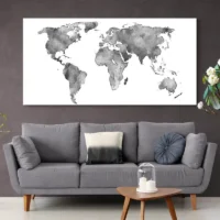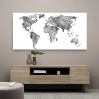 Tableau Carte du Monde Gris, une carte sobre qui habille le mur