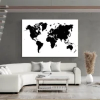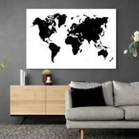 Tableau Carte du Monde Noir et Blanc