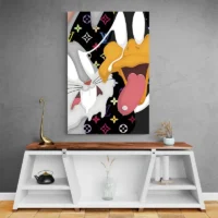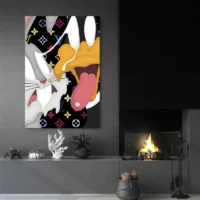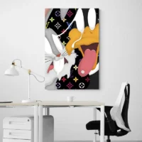 On ressent une énergie légère, ludique et élégante. Le mélange du motif de luxe et du trait de bande dessinée crée un contraste surprenant. Ce tableau convient à quelqu’un qui aime les pièces graphiques, les références de mode et un mur qui affirme un caractère. On sourit, on regarde, on revient vers le détail.
