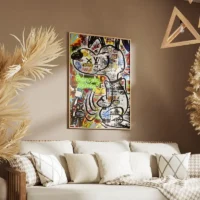 On sent l’énergie et l’humour, l’image joue sur le contraste entre le fond et le sujet. Ce tableau plaît à qui aime les motifs nets, les couleurs franches et l’allure ludique. Il donne de la vitalité à une pièce et attire le regard, il réveille l’espace sans devenir lourd.
