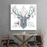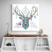 Le rendu paraît graphique et net, avec des couleurs affirmées et des lignes marquées. On voit ce visuel séduire celles et ceux qui aiment l’illustration animalière contemporaine, aux familles, aux chambres et aux espaces de vie qui demandent du caractère. On joue sur le contraste entre les couleurs et le regard du cerf, qui capte et retient l’attention.