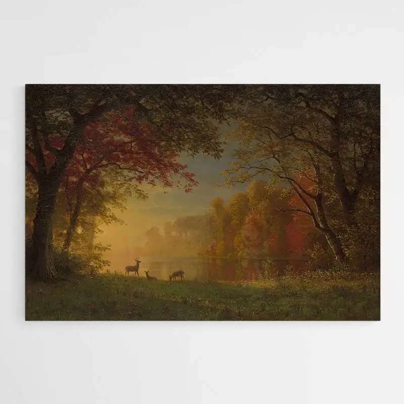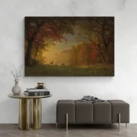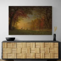 Ce tableau joue la simplicité et l’ampleur. Les formes restent lisibles, les détails comme les bois, les feuilles et la brume apportent du relief. Il séduira les personnes qui aiment les scènes de forêt et les animaux majestueux. Il donne une ambiance contemplative, idéale pour se poser, se laisser aller, réfléchir.