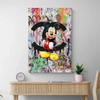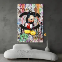 On ressent une énergie vive, ludique et élégante à la fois. Ce tableau plaira aux fans de personnages cultes et aux passionnés d'images qui mixent icônes populaires et logos de couture. Il attire l'œil et installe un point focal fort, simple mais marquant, qui peut amuser et surprendre.