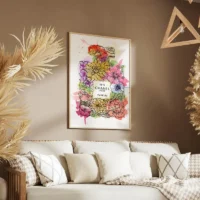 Pour l'accrocher, on choisit un mur clair et un cadre discret. On marie des meubles minéraux et des textiles doux; des touches noir brillant et or fin renforcent l’allure Chanel sans ostentation. Dans une pièce avec peu de couleurs, elle devient le point focal précieux. Pour varier les atmosphères, on peut aussi consulter nos tableaux abstraits et nos tableaux noir et blanc.