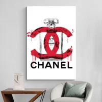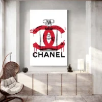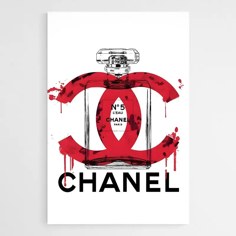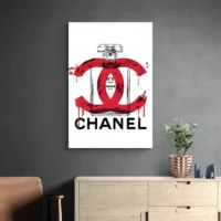 On ressent une allure chic et assumée. Le rouge profond donne de l'intensité, le logo net rappelle l'univers de la mode. Il produit de la modernité et une présence forte dans la pièce. Ce tableau conviendra aux amateurs de silhouettes graphiques, aux personnes qui aiment un mur qui affirme un goût pour les marques et la couleur.