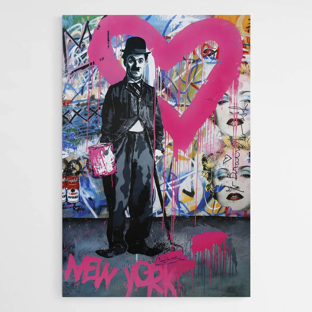 Tableau Charlie Chaplin street art, portrait urbain plein de caractère