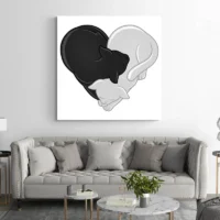 Sur un mur clair, le cœur ressort immédiatement. Sur une commode ou au-dessus d'un lit, il devient le point focal. Associez-le à des textiles unis et un cadre fin pour rester cohérent. Explorez aussi nos tableaux chat ou nos tableaux d'animaux.