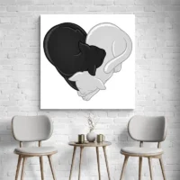 On ressent de la douceur dès le premier regard. Les lignes épurées et le contraste entre le cœur et le pelage créent une émotion tendre et légèrement malicieuse. Ce tableau conviendra aux amoureux des chats, aux parents cherchant une déco pour chambre d'enfant, ou à toute personne qui veut une image claire et affectueuse sur son mur.