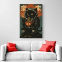Sur un mur clair, les couleurs ressortent immédiatement. Dans une entrée ou un coin lecture, on le place en hauteur pour le mettre en valeur. Pour compléter la scène, découvrez aussi nos tableaux japonais ou nos tableaux chat.