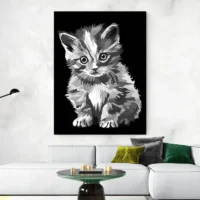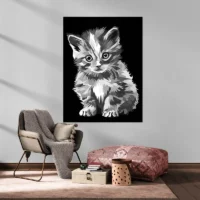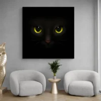 Accrochez cette toile au-dessus d’un canapé ou d’un bureau pour en faire le point focal. Associez-la à des cadres noirs et à des textiles sobres pour harmoniser l’ensemble. Pour parcourir d’autres idées, découvrez nos tableaux chat ou nos tableaux noir et blanc.