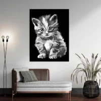 On ressent calme et caractère. Le visage du chat occupe l’espace, le regard attire, la texture du pelage apporte une touche tactile. Ce tableau conviendra aux personnes qui aiment les images épurées, aux amateurs d’animaux et à ceux qui cherchent une déco en noir et blanc, simple et marquante. On garde le mur clair, ou on apporte du contraste, ça marche dans un salon comme dans un bureau.