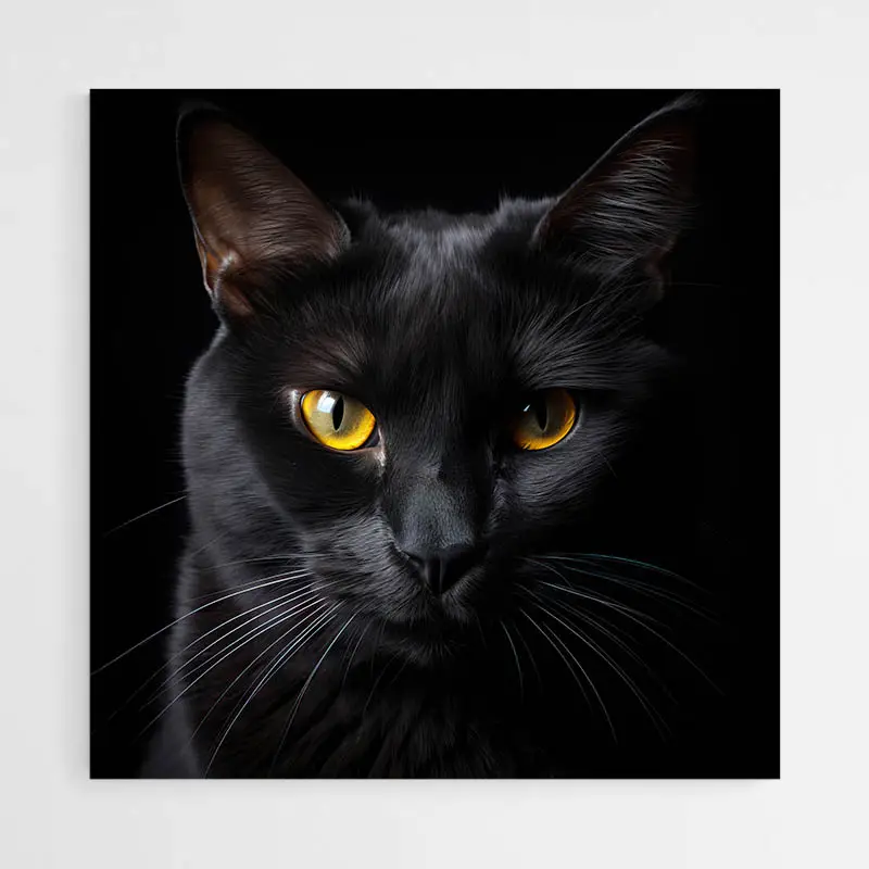 Tableau Chat Noir Yeux Jaunes, un portrait qui frappe