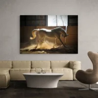 On accroche cette toile sur un mur clair ou un mur en bois, près d'un canapé ou d'une chambre. Associer avec des textiles naturels, du beige, du lin, du bois clair. Pour compléter la pièce, voir aussi nos collections dédiées aux animaux et aux chevaux, par exemple tableaux d’animaux ou tableaux cheval.
