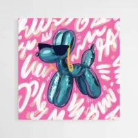 Le Tableau chien ballon montre un chien en gros plan, le museau et le regard bien visibles. Un ballon rond accompagne le sujet, relié par une ficelle fine. Le fond reste uni et clair, sans décor. Les contrastes restent nets, la composition simple et directe, précise et chaleureuse.