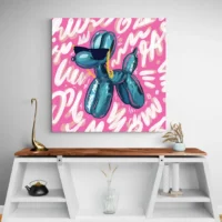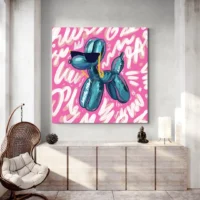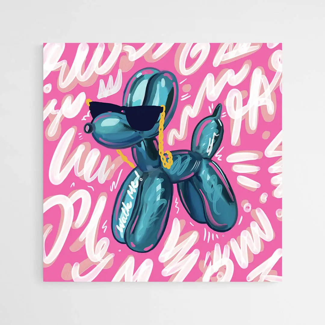 On retrouve un portrait expressif du chien, une présence calme et un petit côté malicieux grâce au ballon. Le format privilégie le visage, on se concentre sur les yeux, le museau et la rondeur du ballon. Ce tableau séduira les amateurs d’animaux, les familles et toute personne qui veut une touche tendre. Il dégage une émotion douce, presque complice, un sourire facile.