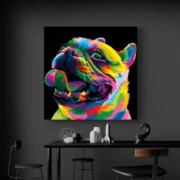 Accrochez cette toile sur un mur clair pour que les couleurs respirent, ou sur un mur sombre pour plus de contraste. Elle marche bien au-dessus d’un meuble bas ou dans une entrée. Pour prolonger l’univers, découvrez aussi nos sélections de tableaux pop art et de tableaux chien.
