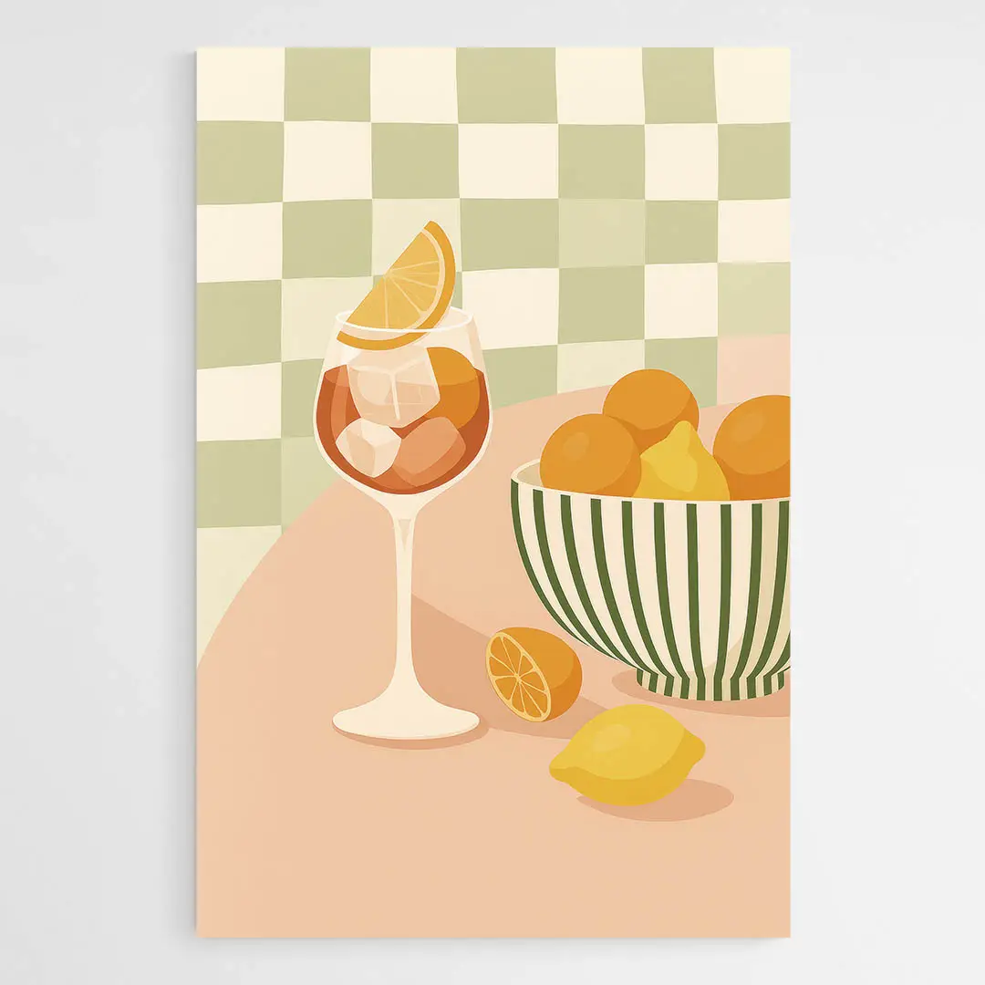On sent tout de suite une ambiance estivale et gourmande. Le verre, les tranches d'agrumes et la texture des glaçons créent un rendu appétissant. Ce tableau séduira les amateurs de cuisine, les personnes qui aiment recevoir, ou celles qui cherchent une déco lumineuse pour une cuisine ou un coin bar. On ressent de l'énergie douce, de la bonne humeur, un côté simple et agréable.