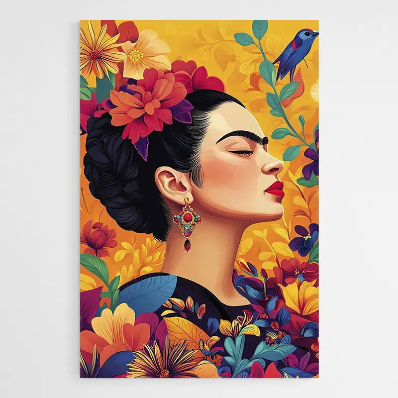 On ressent une énergie chaleureuse et fière. Ce portrait plaira aux amateurs de portraits féminins et à tous ceux qui cherchent une pièce colorée pour animer un mur. L’effet cherché reste direct, joyeux, un peu audacieux sans en faire trop. La présence du regard donne une vraie présence. On sent aussi une énergie populaire, presque festive.