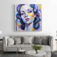 Le rendu mêle traits graphiques et zones de couleur aplatie. On ressent une douceur contenue, une présence tranquille. Ce tableau conviendra à qui aime les portraits contemporains, les images qui ne crient pas mais qui s’imposent. Il apporte une émotion discrète, une proximité, et parfois un sourire, un rappel du corps et du visage.