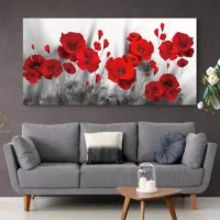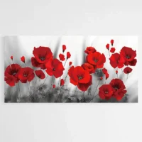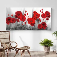 Pour l’accrocher, on privilégie un mur clair afin que les rouges prennent tout leur éclat. On peut l’associer à des meubles bois clair et à des textiles neutres, ou jouer avec des plantes vertes et des objets en terre cuite. Découvrez nos propositions dans les catégories tableaux fleurs et tableaux nature.