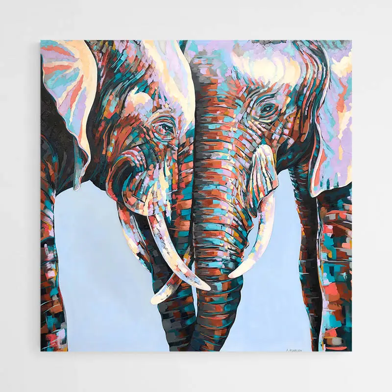 Tableau Couple Éléphant, une pièce qui raconte l'affection et la complicité
