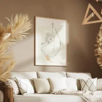 Le rendu reste très sobre, presque graphique. Les formes stylisées montrent le geste plutôt que les détails. Ce tableau plaira à qui cherche une décoration calme, contemporaine, qui met l’accent sur le mouvement et la forme. On cherche à inviter la légèreté et la respiration dans la pièce.