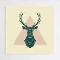On remarque la symétrie des bois, la finesse des contours et quelques nuances de beige et de brun sur le corps. L'ensemble reste minimal, presque graphique, sans éléments superflus. Ce visuel plaira à qui aime la nature, les animaux, et une déco qui respire. Il apporte une présence élégante et tranquille.