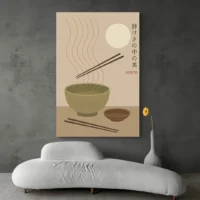 Le visuel s'inspire des estampes traditionnelles mais reste très contemporain. On sent tout de suite une atmosphère zen, mesurée, presque contemplative. Ce tableau séduira la personne qui aime les ambiances sobres, les touches de rouge profond et les lignes graphiques rappelant l'art japonais. Il fonctionne bien pour qui cherche tranquillité et équilibre.