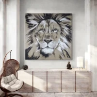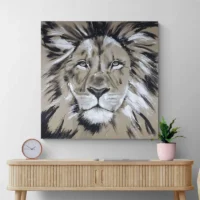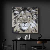 Accrochez-le au-dessus d’un meuble bas ou dans une entrée pour qu’il impose sa présence. Associez-le à des cadres fins et à du bois clair pour tempérer la force du noir. Pour compléter l’ensemble, découvrez nos autres tableaux lion ou nos sélections de tableaux d’animaux.