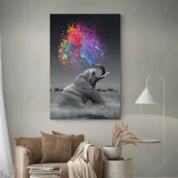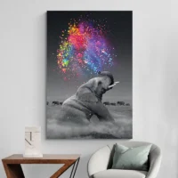 Tableau Éléphant Contemporain s’impose par sa force tranquille et son équilibre. Il plaira à celles et ceux qui aiment les pièces affirmées sans surcharge, parfait pour un salon ou une chambre. Cette image véhicule une atmosphère douce et réfléchie. On ressent aussi une dignité, comme si le sujet regardait droit dans le cœur.