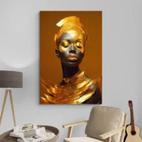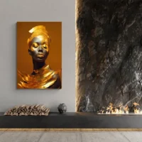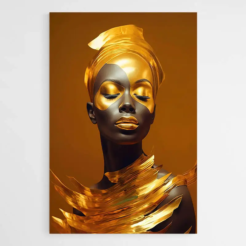Tableau femme dorée, portrait lumineux aux reflets métalliques