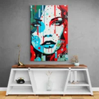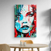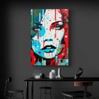 Ce Tableau femme moderne montre un portrait féminin en gros plan, visage frontal et traits simplifiés. On remarque un fond clair qui met le sujet en avant, des cheveux foncés qui contrastent avec la peau, et des yeux dessinés avec précision. Les lèvres affichent un contour affirmé, la mâchoire reste nette, le rendu reste sobre et direct. On s'attarde, on revient, on suit le regard, on reste un peu.