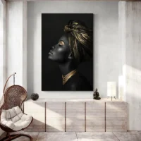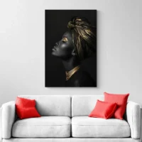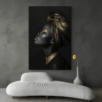 Tableau femme noire et or, une présence élégante