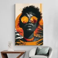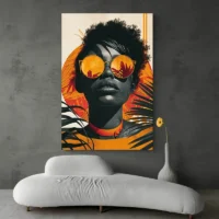 Tableau femme noire lunettes oranges, un portrait moderne et captivant