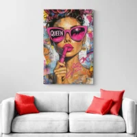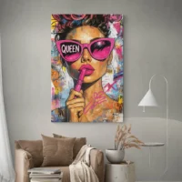 On parle d’un style urbain, contemporain, proche du street art que l’on croise sur les murs de ville. Il plaira aux amateurs d’images fortes, aux passionnés de portraits stylisés et à ceux qui veulent donner du caractère à une pièce. L’effet recherché, c’est une présence visuelle immédiate, un peu d’audace et une ambiance citadine, vive, sans sophistication excessive.