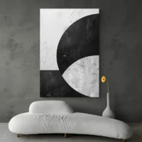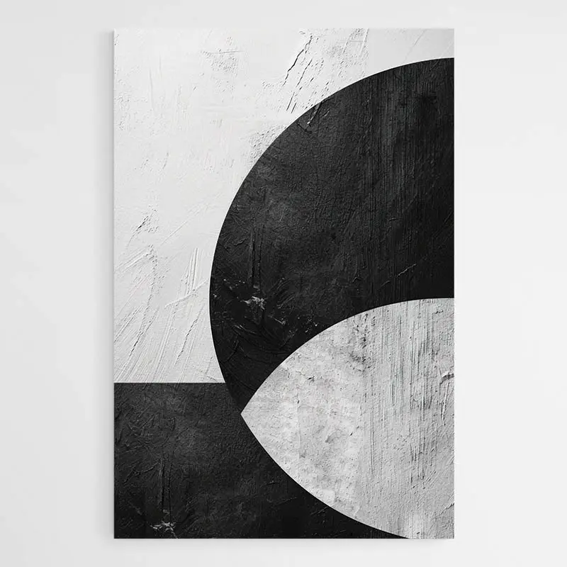 La palette réduite au noir et blanc crée une forte lisibilité. L'effet visuel reste calme, élégant, presque zen. Ce tableau convient à qui aime les intérieurs épurés, les ambiances étudiées et les murs qui respirent. Il parle aux amateurs de géométrie simple, à ceux qui aiment la déco minimaliste.