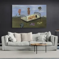 Sur un mur clair, les tons bleus et gris ressortent et la scène garde son intensité. Dans un espace épuré, ce tableau devient point focal. Pour prolonger l'ambiance, découvrez aussi nos reproductions de tableaux ou nos tableaux modernes.