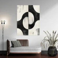 Accrochez-le au-dessus d'un canapé clair ou d'une console en bois. Associez-le à textiles neutres et à cadres fins noirs pour rappeler le trait. Pour d'autres options, découvrez nos tableaux géométriques ou nos tableaux minimalistes.