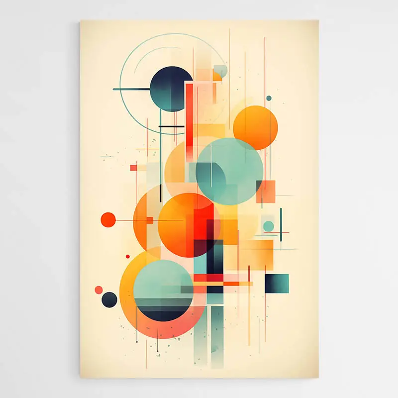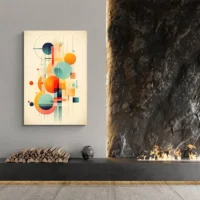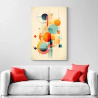 La toile mise sur l’équilibre: formes rondes et angles droits, couleurs neutres et touches plus soutenues. Elle plaira à une personne qui cherche une déco posée, pas chargée, et qui apprécie la clarté visuelle. L’émotion reste sereine, presque méditative, un peu contenue mais chaleureuse. Le jeu d’échelles entre les formes apporte du mouvement discret.
