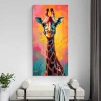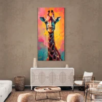 Sur un mur blanc, la girafe ressort fortement. Sur un mur beige, l’ensemble devient plus doux. Associez-la à des cadres simples et quelques plantes. Découvrez aussi nos autres tableaux girafe ou nos tableaux d’animaux.