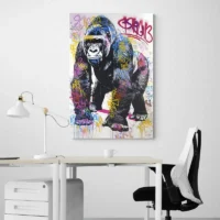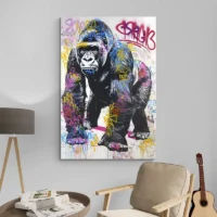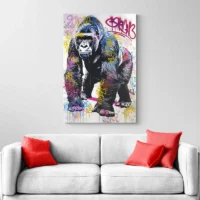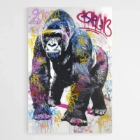 Tableau Gorille Street Art Rose, une image forte et urbaine