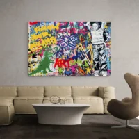 Cette toile séduira les amateurs d'art de rue et ceux qui aiment les images franches. Les contrastes forts donnent du caractère, l'ensemble provoque une impression de mouvement et d'urgence, parfois même de rébellion. On ressent de la vitalité, une énergie un peu explosive. C'est une pièce qui capte le regard et qui réveille un mur sans en faire trop.