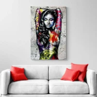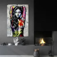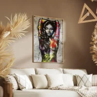 On ressent une force directe, un côté cru et spontané. Les contours marqués et les couches superposées attirent immédiatement le regard. Cette toile plaira à qui aime l’art urbain, les contrastes francs et les images qui osent. C’est une affiche qui fonctionne comme pièce principale et qui impose sa présence.