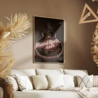 Pour mettre cette image en valeur, on privilégie un mur clair et une lumière chaude. On peut l’associer à des objets métalliques ou en bois clair et éviter les surcharges qui pourraient masquer le contraste. Cette pièce s’entend bien avec un univers minimaliste ou moderne, et apporte une touche musicale sans surcharge visuelle.